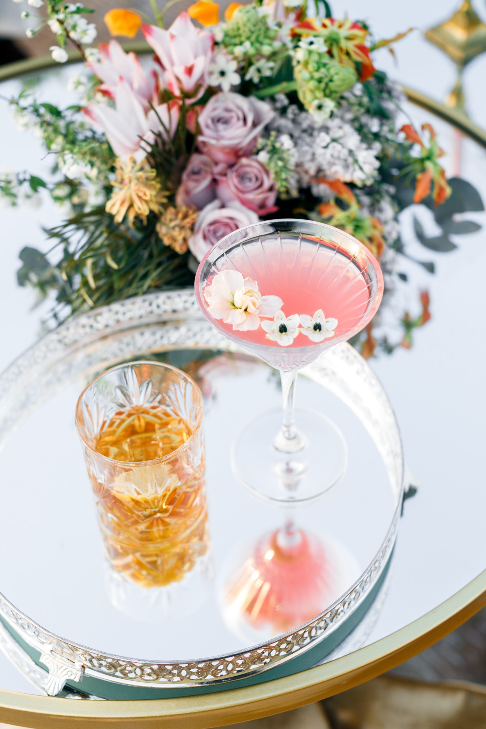 “I am loving an iridescent palette for spring weddings for a modern twist on pastels,” says McKechnie. “It’s a surprising twist that complements a number of colors and adds a fun shimmer in glassware and décor.”