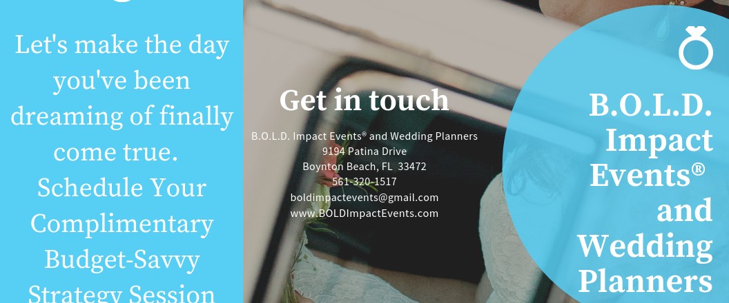 BUDGET-Savvy | ORGANIZED | LASTING-memories | DETAIL-oriented is what B.O.L.D. Impact Events is all about. BOLD Impact Events is a nationwide event planner, wedding planner, and event / wedding design company whose main purpose is the SAVE you money, SAVE you time, and SAVE you stress! Bring your vision and theme to life and sit back, relax, and enjoy your special day!