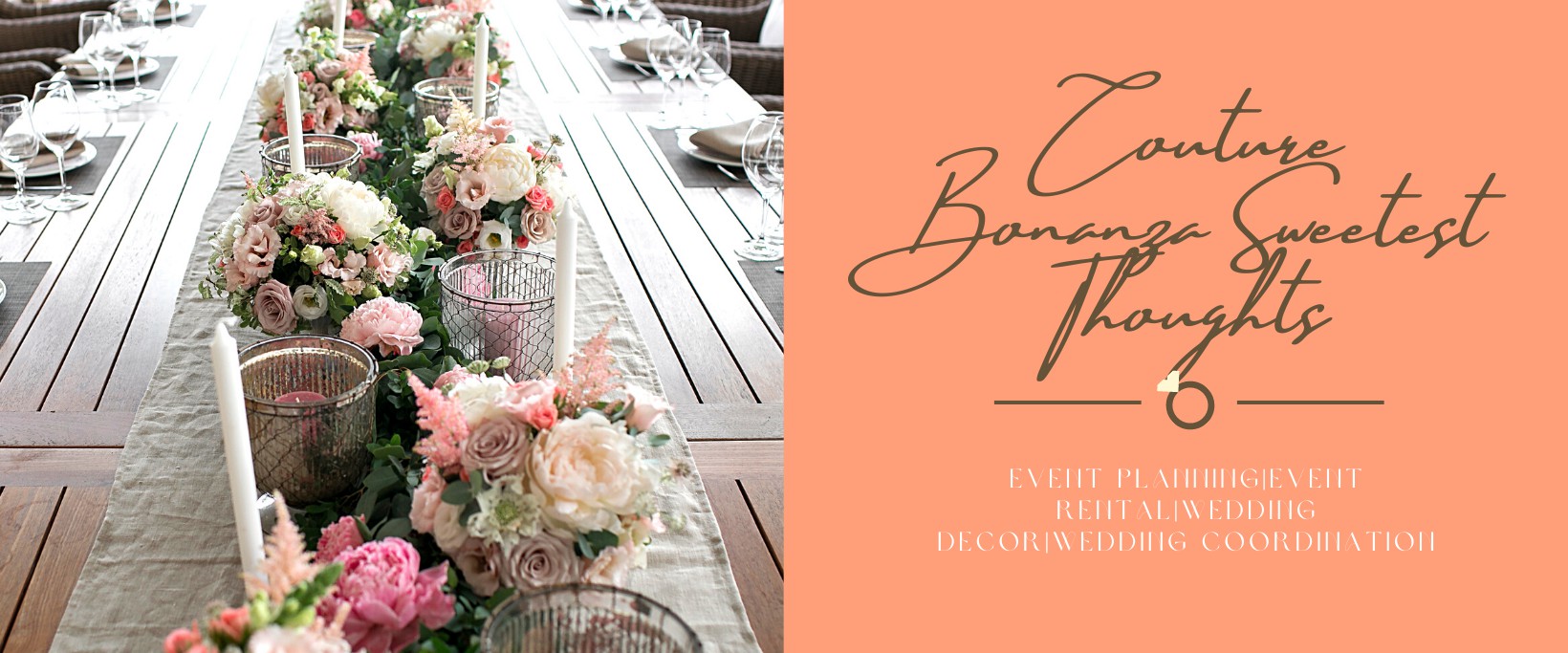 Couture Bonanza Sweetest Thoughts is a family-owned, full-service rental company based out of Houston, TX, and servicing the surrounding north Houston area such and more. We are a one-stop shop, servicing couples with an experienced event planner if needed while providing modern and elegant wedding decor and event rentals. Our diverse inventory includes a host of items that to-be-weds and future clients can peruse and choose from. We are devoted to assisting clients however possible even down to the smallest detail of your event, from furnishing weddings with beautiful linens, shiny flatware, elegant or rustic decor, glassware, floral arrangements, centerpieces, delivery, setup, breakdown, and much more! Our wedding planners, event planners, and event decorators are certified and devoted to what they do.